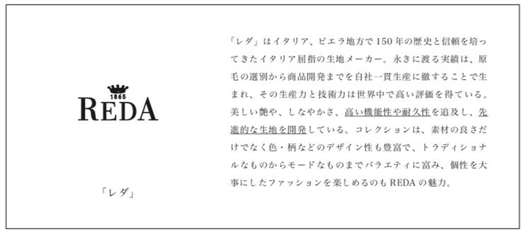 イタリアのREDA社の生地を使用したスーツから