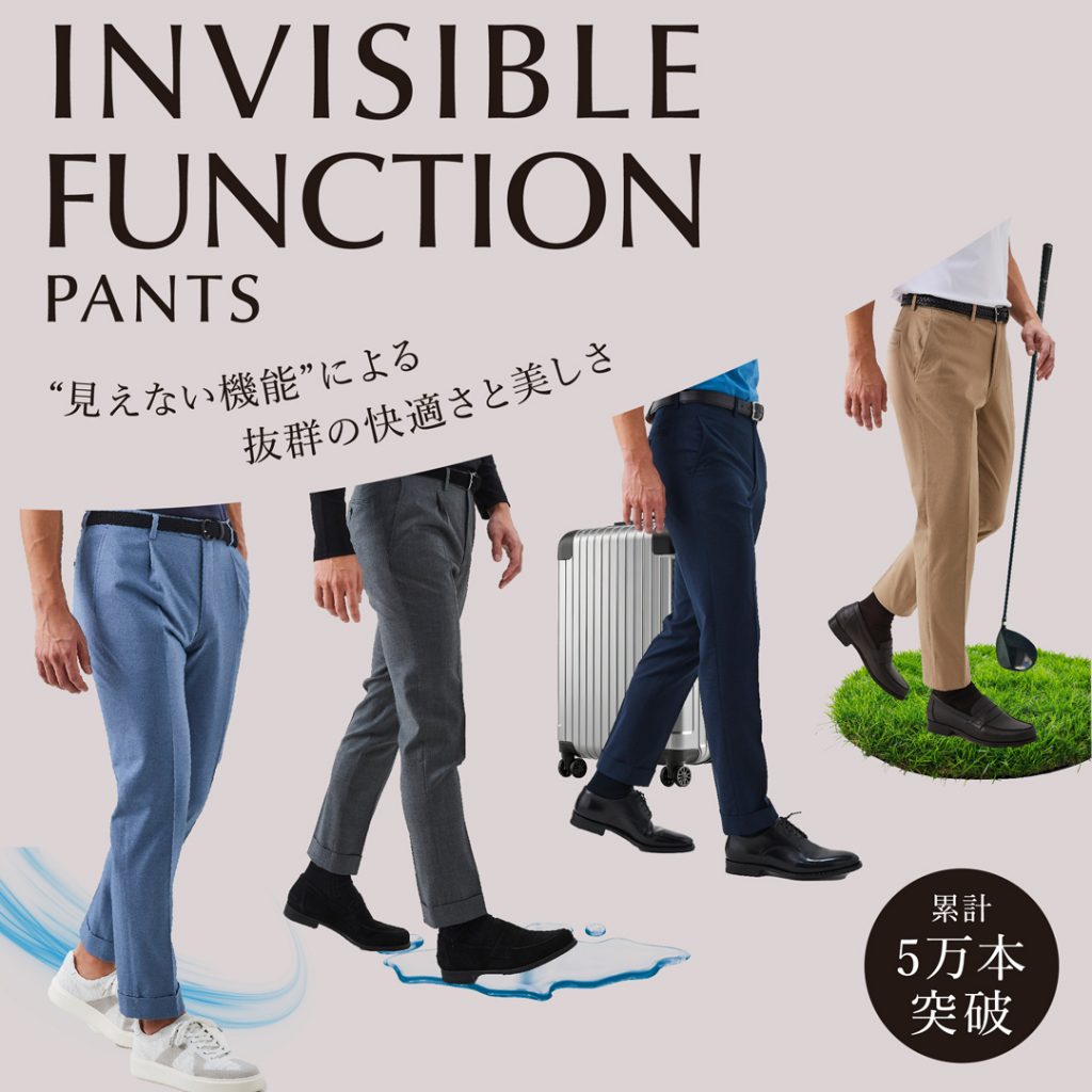 抜群の快適さと美しさ、インビジブルファンクションパンツ