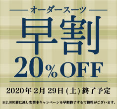 【早割キャンペーン】冬に作って、春に売る。オンリーでは、1月1日より春夏新作生地を20%OFFの価格でオーダーいただけるテーラーメイド「早割」キャンペーンを開催しております。
