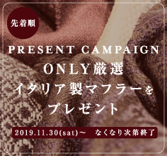 【PRESENT CAMPAIGN】 ONLY厳選イタリア製マフラーをプレゼント