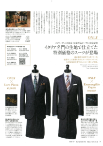 【メディア掲載情報】日経マガジンスタイルにオンリープレミオ東京 有楽町店オープン決定記念特別価格のスーツが掲載されました。