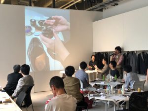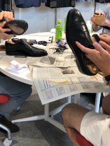 当日は靴磨き専門店 靴みがき本舗様からプロの職人2名をお呼びし、磨くうえで必要な道具説明や磨き方などを丁寧に説明していただきました。