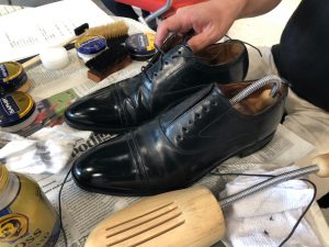 皆さん真剣に講師のお話を聞いた後、実際にご自身が履かれている靴を磨く実習をいたしました。