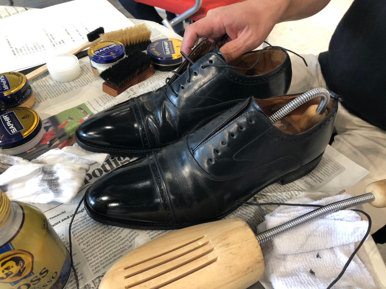 午後は店内の一部スペースに靴磨きコーナーを設け、ご来店されたお客様の靴を磨くサービスもいたしました。