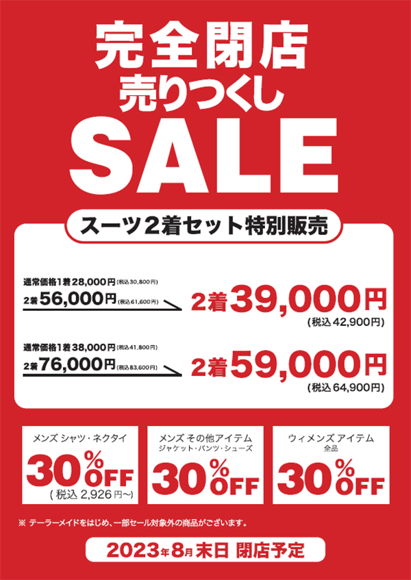 8月末の閉店予定日まで「完全閉店売りつくしセール」を開催中。