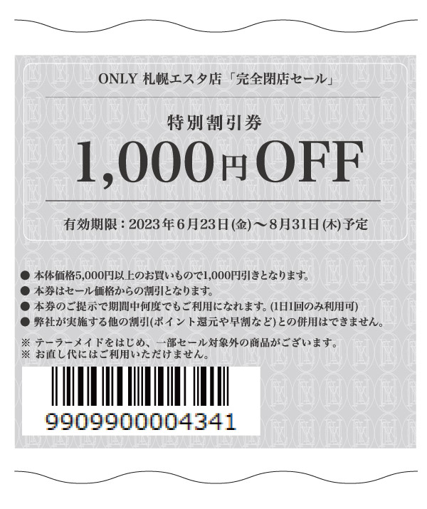 【完全閉店売り尽くしセールのお知らせ】札幌エスタ店