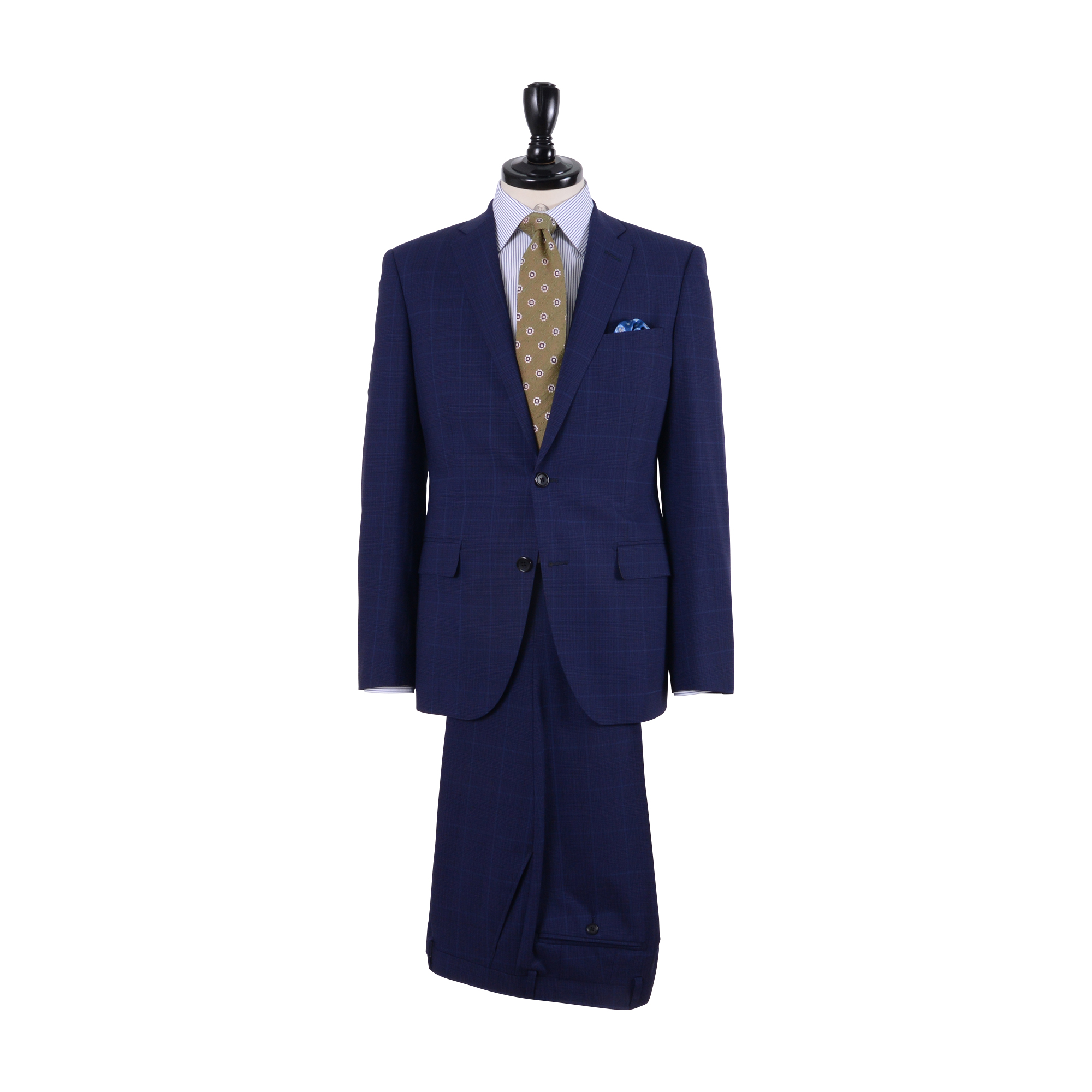 発色の良い上品なブルーのスーツは、名門ドラゴ社だからなせる技