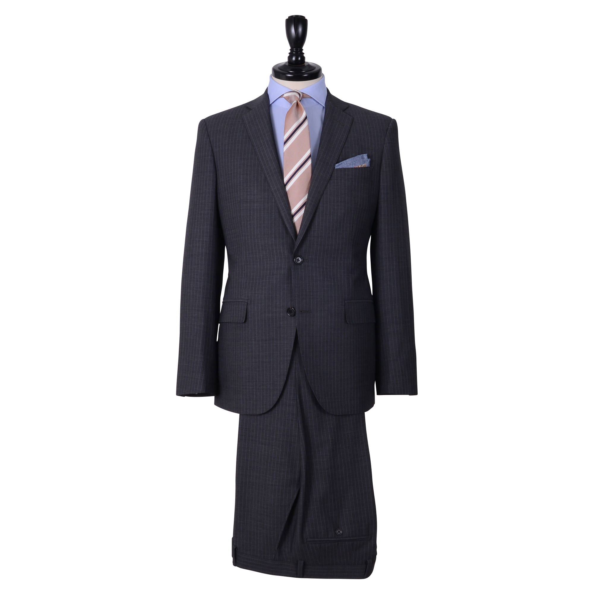 上品なグレーのピンストライプ柄はビジネススタイルを引き立たせます。