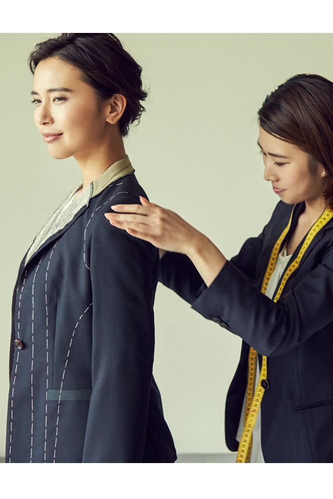 レディーススーツは生地のバリエーションが少ない。身体に合ったスーツがなかなか見つからない。そんなお悩みをお持ちでしたら、ぜひ一度、ONLYのTAILOR MADEをお試しください。ONLYでは1号~23号まで幅広くサイズを展開しており、ジャケットは11種類、ボトムは9種類からお選びいただけます。生地は毎シーズン100種類以上ご用意しており、オプションで細部までこだわれるのもオーダースーツならでは。裏地やボタンを変えてみたり、名前を刺繍したり、あなただけのお気に入りの一着をお仕立てします。