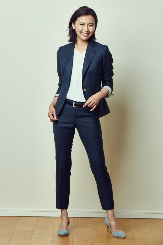 袖口のボタンを外してカフスが開くように本格的に作り込むことができます。仕立てのいいスーツを着ていると仕事ができる女性のイメージに。