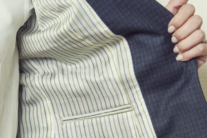 ジャケットを脱いだ時などふと見えるライニング(裏地)をお好きな色柄に変更できます。見えないところにこだわってセンスをアピールしてみては。