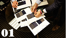 まずは生地選びからスタート。100種類以上の豊富なインポート生地や高品質でリーズナブルなオリジナル生地が選択肢。