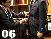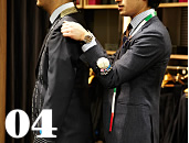 [ B ] 調整のしやすいゲージ服で完成系のフィットを鏡でチェック。オーダー初心者も安心できる