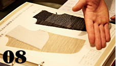 表地に合わせて、裏地、ボタンなど細部を決定していく。