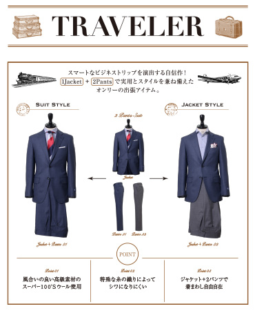 ジャケット+2パンツで38,000円の 春夏版「トラベラー」が登場