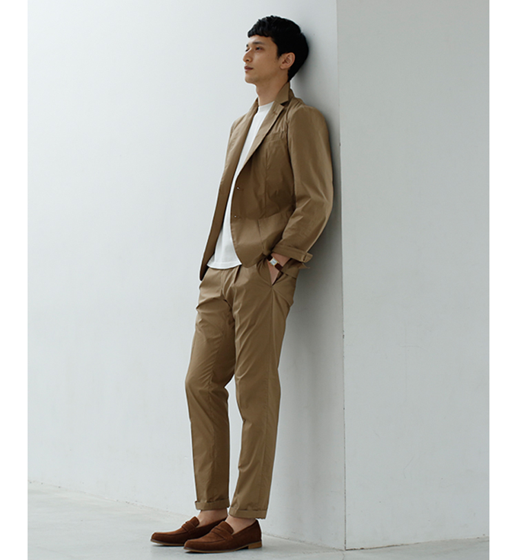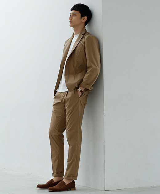 ジャージーとはいえ、オンリーが考えるジャケットはあくまで大人がオンタイムに使える一着であることが基本。リラックスした着心地ながら、しっかりタイドアップで装えるのです。