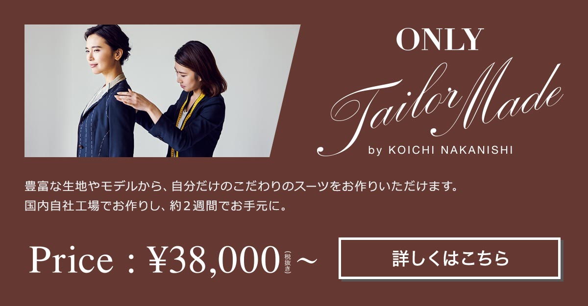 若い世代には、細身の体型やスポーツ体型など、既製のスーツが合わない体型の方が多いのも特徴です。そんな世代にお勧めしたいのが、気軽に作ることができるONLYのオーダースーツ。